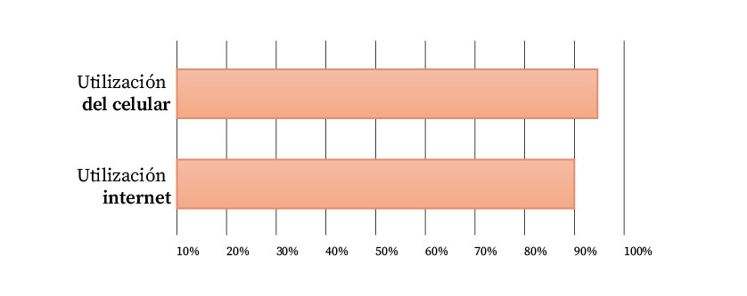 Fuente: (INDEC, 2019)Por otra parte, 84 de cada 100 personas utilizan teléfono celular y 80 de cada 100, internet (Fig. 8) (Instituto Nacional de Estadísticas y Censos, 2019).