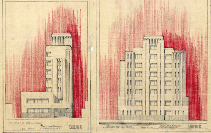 En una primera etapa[5], se trabajó con el archivo del estudio de los arquitectos Hilarión Hernández Larguía (Buenos Aires, 1892 – Rosario, 1978) y Juan Manuel Newton (Buenos Aires, 1889 – Rosario, 1961), producido entre las décadas de 1920 y 1950. Este fondo documental, conservado en su mayoría, permitió acceder a la planimetría de una amplia cantidad de obras desarrolladas por el estudio. La digitalización del material tuvo un doble propósito: asegurar su preservación y, al mismo tiempo, facilitar su difusión, habilitando nuevas posibilidades para su análisis e interpretación.