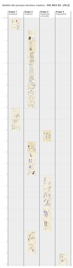 Actualmente, el archivo desarrolla nuevas investigaciones enfocadas en los flujos iterativos propios del pensamiento creativo (ver figura 9), donde la visualización, una vez más, es tanto objetivo como método. Estos estudios permitirán integrar nuevas dinámicas de visualización en CuadernoGrama y proyectan su aplicación a contextos de enseñanza en arquitectura y diseño, fortaleciendo el vínculo entre archivo, investigación y docencia (Duimovic, 2025).