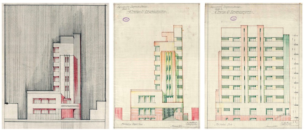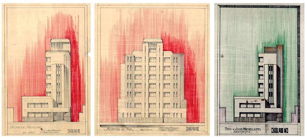 Alternativas de fachadas del proyecto original. Fuente: Archivo empresa Micheletti.