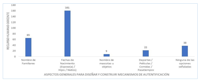 Por otro lado, se investigó más afondo sobre los aspectos o elementos que utiliza el recurso humano-docente para construir los mecanismos de autentificación, lo cual dio como resultados lo que se muestra en la figura 7.