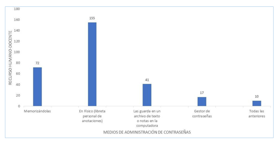Cabe señalar que, es imperativo conocer el diseño, la estructuración y usabilidad de las contraseñas por parte de los docentes de esta Unidad Académica, las cuales se han vuelto un componente esencial en la salvaguarda de la integridad de la información institucional-académica (López y Villa, 2016).