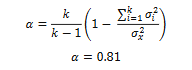𝜎x2= Variana total de las puntuaciones de cada items.
