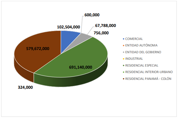Se observa en la figura 1 que el 48% corresponde al sector de residencia especial con el mayor consumo, con un total de 5,782 durante el 2020; muy seguido está, con un 40% el sector residencial Panamá-Colón con un total de 5, 249 clientes. La sumatoria de estos dos tipos de clientes, corresponde a un 87% residencial, dejando en su recorrido una huella hídrica inadmisible.