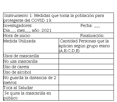 El proceso de recolección de datos se extendió por 4 meses utilizando los instrumentos de medición denominados: instrumento para conocer las medidas para protegerte del COVID-19, El instrumento se trata de verificar si cumplen con las medidas para impedir el contagio del COVID-19.