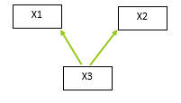 X1 y x2 así mismo estarán relacionadas si ambas se tienen una causa común a una tercera variable interviniente x3. A esta relación se le denomina relación espuria.