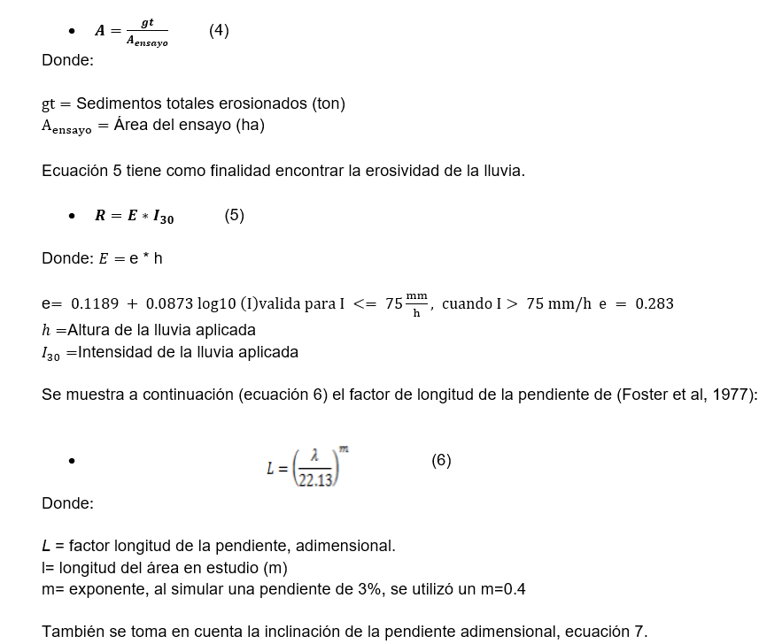 A continuación, se presenta las pérdidas de suelo (A), ecuación 4.
