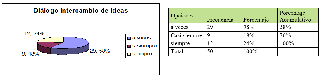 6.-El diálogo en las aulas se aplica como intercambio de ideas que permitan el enriquecimiento personal.