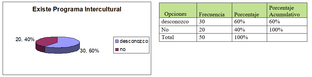 Pregunta 8. Cerciorar la existencia de un programa que respalde la práctica de la Interculturalidad.