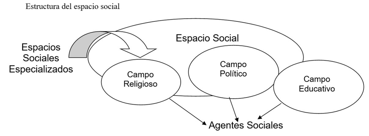 El esquema representa los campos que influyen en el individuo para su socialización acompañado cada uno de los campos con los elementos vitales para el desarrollo de un buen convivir en el espacio social.