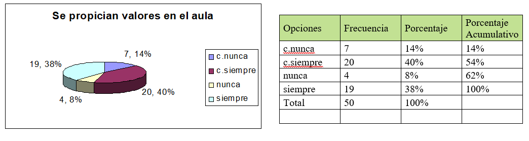 4.-Se propicia en las aulas educativas los valores como el respeto, la tolerancia a la diversidad cultural, así como el enriquecimiento de esta.