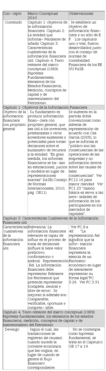 El marco conceptual “establece los conceptos que subyacen en la preparación y presentación de los estados financieros para usuarios externos”. (Consejo de Normas Internacionales –IASB-, 2010). Este marco conceptual, al estar desarrollado en forma conjunta entre el Consejo de Normas Internacionales, en adelante IASB, y el Consejo de Normas de Contabilidad Financiera de los Estados Unidos, en adelante FASB, tiene una fuerte influencia en la plataforma económica anglosajona, de tal manera, que el predominio positivista y empirista de esta corriente ubicaría a la contabilidad en la teneduría de libros, y en los desarrollos adheridos al mercado de capitales y a la contabilidad financiera desde la óptica de preparar información para la presentación de estados financieros con la presunción de ser verdaderos y fidedignos, bajo la estructura de representación de la partida doble y, además, auspiciadas por las grandes firmas de Auditoría.