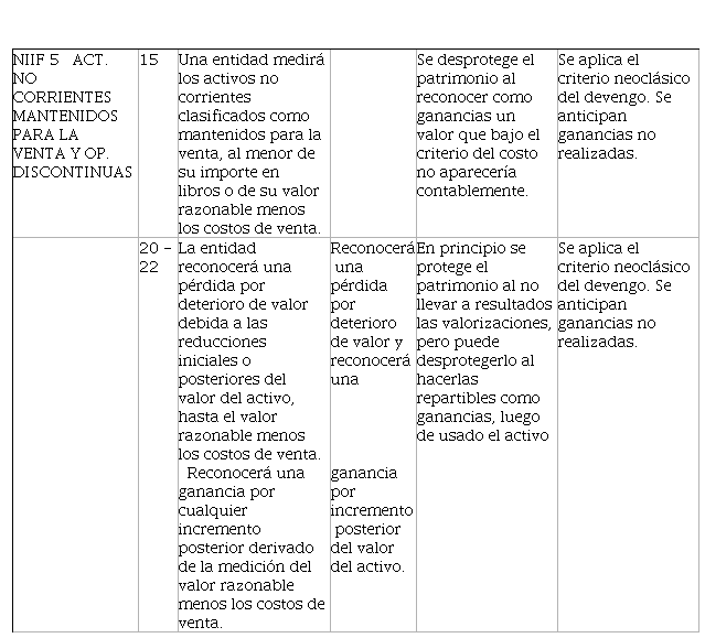 Al mantener la dicotomía valorativa, con las consecuencias contradictorias en los resultados y en lo relacionado con el mantenimiento del patrimonio, según puede observarse en el cuadro precedente, en el que se resaltaron los más notables contenidos relacionados con la valoración y sus efectos, no se puede concluir otra cosa que su impertinencia para el objetivo planteado por el modelo NIC-NIIF, como es el de suministrar valoraciones actualizadas a los usuarios financieros; pero, de otra parte, no puede ser más inútil la información cuando de los gestores empresariales se trata.