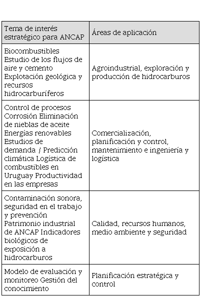 Cuadro 2: Temas de interés estratégicos para ANCAP y áreas de aplicación