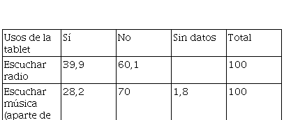Tabla 2. Distribución de usuarios según usos de la tablet. Porcentajes