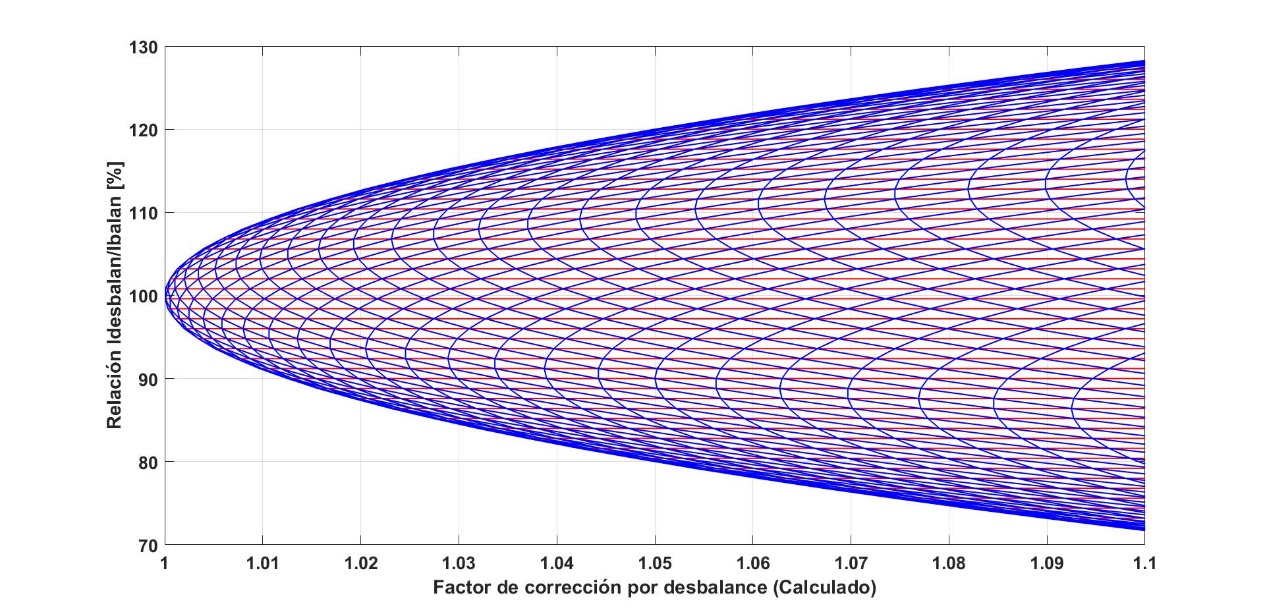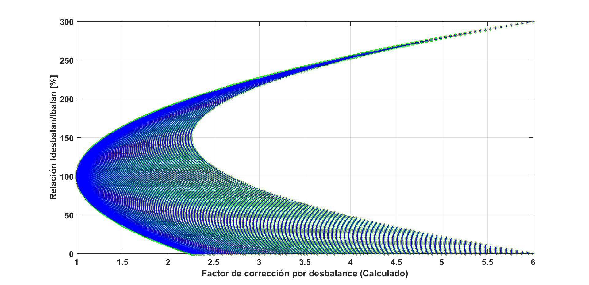 Con el objeto de mostrar cuáles serán los valores del factor de corrección “FdesbBT" para diferentes valores del rango de variación de la relación porcentual “Idesbalan/Ibalan”, se presenta la Tabla 1.