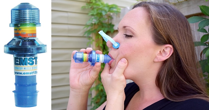 Actualmente, un enfoque que tiene el potencial de aumentar la función de los músculos respiratorios es el Entrenamiento de los Músculos Respiratorios (EMR). Este tipo de ejercicio está sustentado por evidencia a diferencia de los anteriores. Los ejercicios usados en el EMR son de alta intensidad y están diseñados para aumentar la fuerza, por lo tanto, los músculos específicos pueden beneficiarse y actuar como una plataforma para mejorar la respiración [18]. Este tipo de entrenamiento es realizado con dispositivos de Entrenamiento de Fuerza Muscular Respiratoria (EFMR) o Respiratory muscle strength training (RMST) en inglés (Figura 1 y 2).