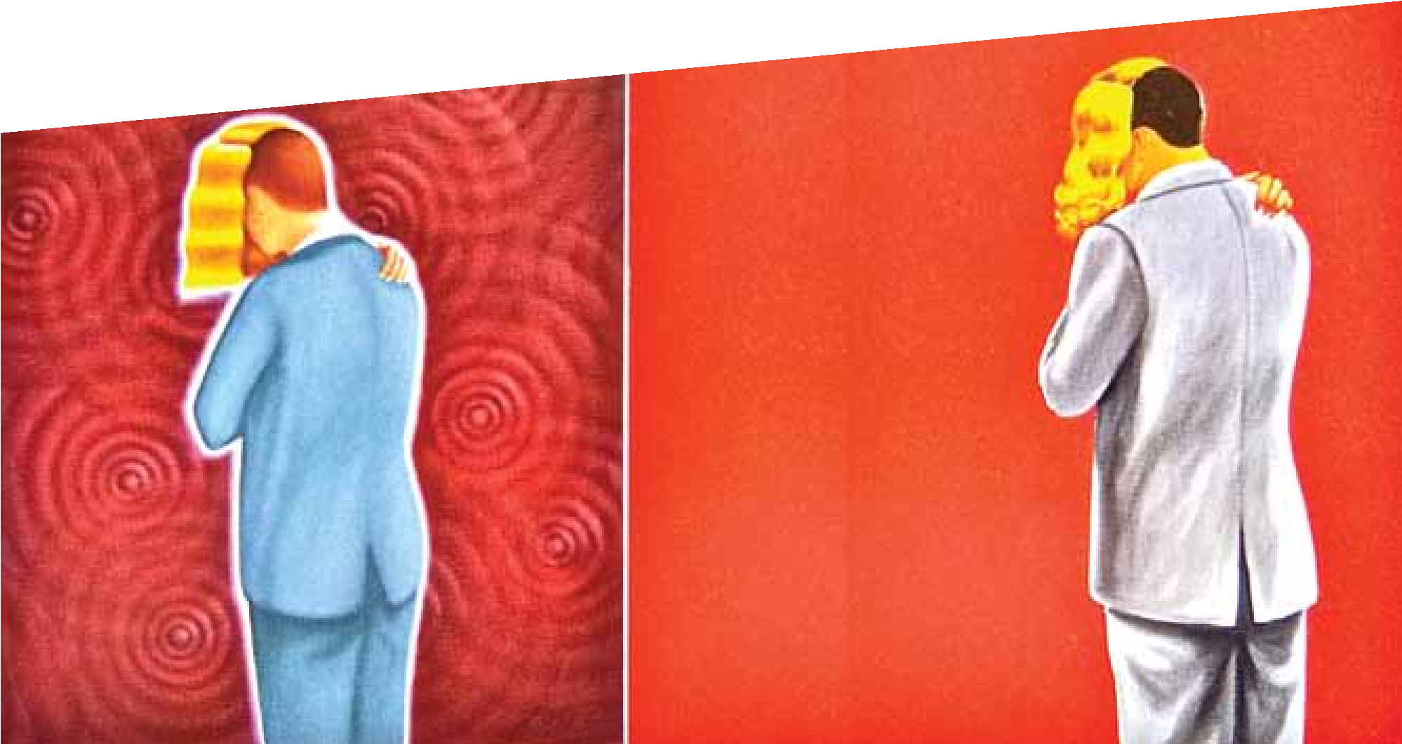 XA: Sí. No es mera apropiación. En Los Ángeles, Irene Tsatsos, directora del The Armory Center for the Arts, me decía que es un proyecto basado en la falsa traducción, porque cuando Don Pili traduce una imagen como la de Gilbert and George, lo hace a partir de su tradición rotulista y altera significativamente la imagen. El original de esa obra, Sting-land, es de enorme escala, y Don Pili lo reduce a una placa de madera y esmalte, agrega tipografía y texto para que funcione como rótulo, y en esa traducción hay una suma de traducciones fallidas en el camino. También hay que tener en cuenta que Don Pili necesita optimizar su tiempo, entonces utiliza talleristas; y cuando meten la pata, pone el grito en el aire y decide hacer la obra él mismo. Esas cosas juegan bien con el proyecto, que es copia de copia, copia fallida de copia.