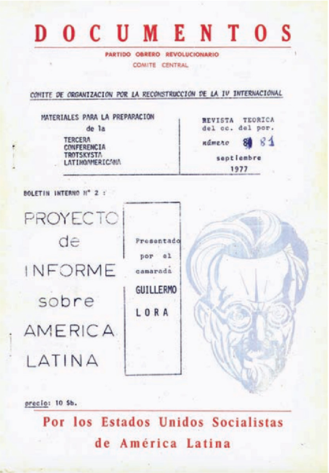 Figura 3. Portada de la revista Teórica del Comité Central del POR, 1977, Por Los Estados Unidos Socialistas de América Latina. Informe del Camarada Guillermo Lora.