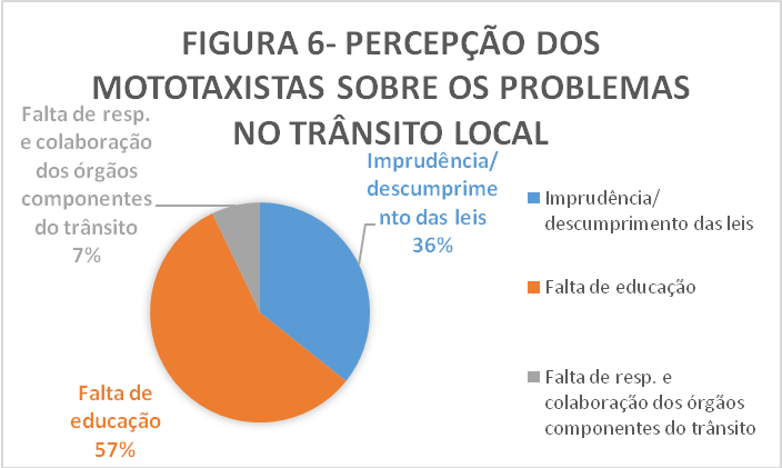 Buscando aprofundar a percepção dos sujeitos acerca dos problemas relacionados a mobilidade citadas anteriormente, questionou-se sobre os maiores problemas identificados no trânsito. A percepção deste encontra-se ilustrado na Figura 6 a seguir.