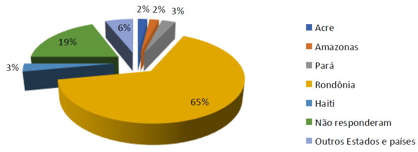 De acordo com levantamento realizado pela escola no ano de 2017, a naturalidade dos estudantes é predominantemente de Rondônia, mas com uma importante porcentagem de estudantes que não responderam ao levantamento (19%) e uma parcela de ascendência haitiana (3%) e de outros estados e países (6%), como se pode observar no quadro abaixo: