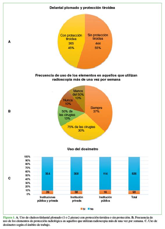 El objetivo de este estudio fue analizar los resultados de una encuesta que identifica las prácticas que implican exposición a la radiación en el ámbito de la ortopedia y traumatología, en la Argentina, considerando la frecuencia de uso de la radioscopia, el nivel de conocimiento y el uso de elementos de protección radiológica.