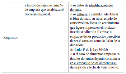 ley de donación de alimentos, obtenida tras el análisis de selección de criterios que podrán aportar al régimen de donaciones en el Perú y viceversa.