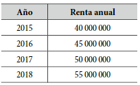 Para los dos años previos, se han utilizado montos ascendentes acordes al ritmo de crecimiento del sector retail[14] en Perú, mostrado por CCR, consultora internacional dedicada al diagnóstico estratégico para decisiones de negocios (PerúRetail, 18 de enero de 2018).