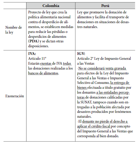 Por otro lado, respecto a la segunda hipótesis, una vez calculado el impacto positivo que crea la Ley 30498 mostrado en la primera hipótesis, se conocieron nuevas formas de legislar para comprender y mejorar, mediante un comparativo normativo con Colombia, país de referencia, que desde el 2009 vienen promoviendo la donación a través de los bancos de alimentos.