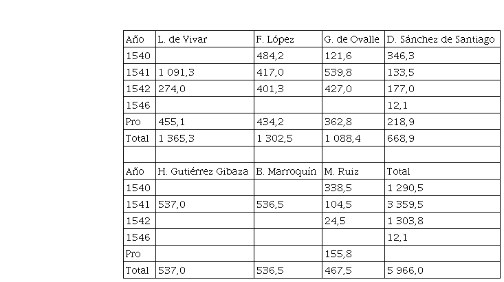Para conocer el monto del oro obtenido en las minas de Chiapas, se pueden utilizar estos registros como una fuente primaria. Es muy probable que los mineros hayan ocultado alguna parte de oro, 32 y es difícil suponer que todo el oro sacado de las minas en Chiapas durante la década de 1540 haya sido presentado en la casa de fundición en Ciudad Real. Sin embargo, considero importante hacer una primera observación a partir de los datos disponibles.