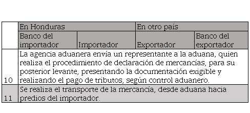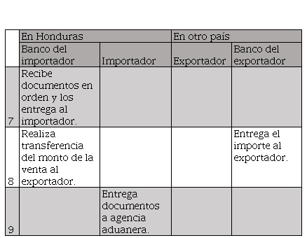 En la siguiente tabla se explica, e forma detallada el proceso de contratación del servicio de carta de crédito, haciendo una relación con la logística internacional, en la compraventa de mercancía de un importador ubicado en Honduras y un exportador ubicado en otro país.