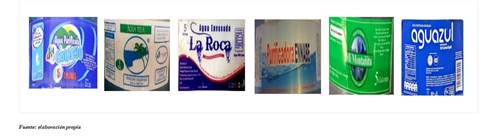 Se analizaron las etiquetas de los botellones de agua de cinco galones ofertados por las empresas a nivel local con el propósito de determinar los colores predominantes en estas. Los dos colores predominantes son el azul y blanco. Otras empresas incluyeron el rojo y en casos particulares el verde y el amarillo.