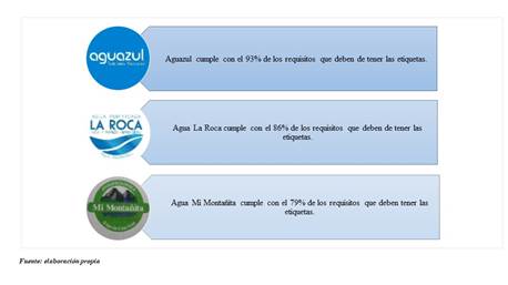 De acuerdo con el análisis de los requisitos legales que deben tener las etiquetas del producto de agua, según la Secretaría de Estado en el Despacho de Salud (2005), estas empresas son las que más requisitos cumplen: