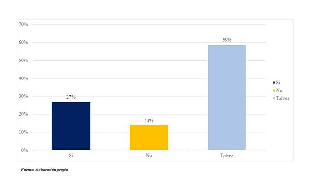 Al consultarle a la población sobre la posibilidad de comprar agua purificada a una nueva empresa, el 59% menciona que tal vez y un 27% dijo que sí.