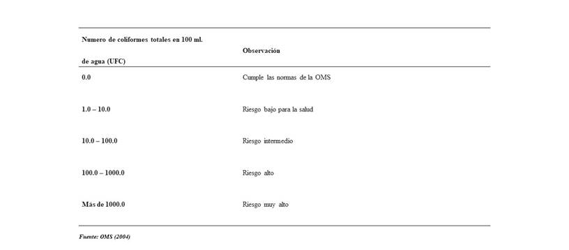 El agua debe cumplir ciertas normas de higiene para su consumo como estar libre de patógenos, impurezas y bacterias, y cualquier tipo de contaminación. A continuación, se muestra una clasificación general de coliformes en las fuentes de agua: