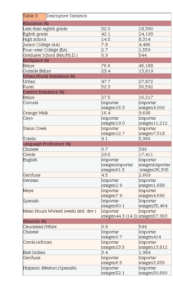 Evidence that Belize is a multilingual society is clearly apparent as over five percent of our sample was fully fluent in Creole, Spanish, and English. This language combination extended earnings by