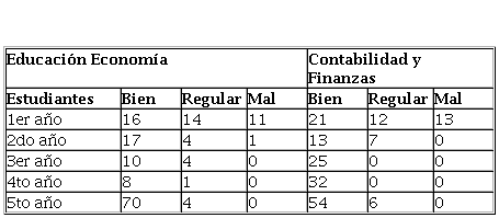 En la Licenciatura en Contabilidad y Finanzas 46 estudiantes estaban en el primer año, lo que representa el 24,59 %; 20 en el segundo año, para un 10,92 %; 25 en el tercer año (13,66 %); 32 en el cuarto año para un 17,11 %, y 60 en quinto año para un 32,08 % del total.