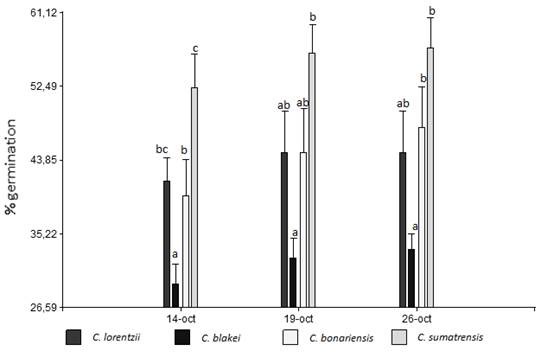 · The germination percentage presented significant differences between species, being Conyza sumatrensis the species with the highest number of births.