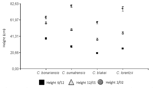 The plants' height was measured (from the base to their apex) on three sampling dates (09/12/2015, 12/01/2016, 02/02/2016).