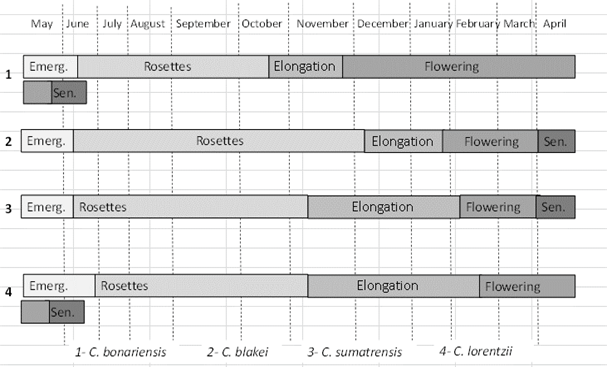 · All species completed the life cycle within one year from germination.