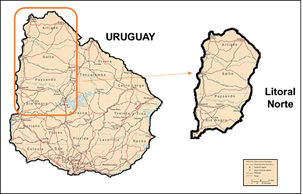La investigación se realizó en la región litoral norte de Uruguay, que se corresponde con los departamentos de Artigas, Salto, Paysandú y Río Negro (Figura 1) y abarca 49.295 km2, correspondientes al 28 % del área nacional, asimismo, comprende el 11 % de la población total del país (366.145 personas) y el 12 % de la población rural nacional (20.949 personas)(22).