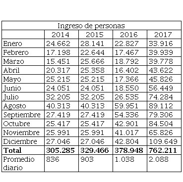 Debido a la crisis humanitaria, social, política y económica que afronta Venezuela, las zonas de frontera con Colombia se han vuelto un centro de informalidad e inestabilidad social. Esto se explica en gran parte por los recientes procesos migratorios. Así, “Migración Colombia contabilizó durante el año 2017 un promedio diario de 2.088 venezolanos que ingresan por los siete cruces fronterizos existentes a lo largo de seis departamentos limítrofes, desde La Guajira hasta Guainía, de los cuales Cúcuta es el principal corredor humano.” (Revista Semana, 2017), (Ver figuras 1, figura 2 y tabla 1).