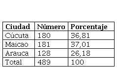 En total se realizaron 489 encuestas distribuidas de la siguiente manera: 181 en la ciudad de Maicao, 180 en Cúcuta y 128 en Arauca (ver tabla 6). En conjunto, la distribución por género muestra que es similar la cantidad de hombres y de mujeres propietarios de unidades productivas informales: