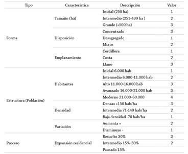 La Tabla 2, muestra el resumen de los criterios e indicadores de la estructura de análisis elaborado, donde se le asignó, a cada indicador, una valoración para realizar una suma lineal, de esta forma se establecen diferencias de acuerdo a una jerarquía de análisis. En primer lugar, la indicación de valoración se estructura en un rango de fluctuación siendo: uno (1) cuando la característica se encuentra poco desarrollada; dos (2) cuando la característica se encuentra medianamente desarrollada y; tres (3) cuando la característica se encuentra plenamente desarrollada. En virtud de la pertinencia, la valoración de los criterios, es realizada de acuerdo a juicio de expertos.