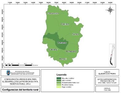 El estudio permite configurar a la Provincia de Itata de la Región de Ñuble, como un espacio rural, contenedor de realidades diversas. Para ello, se complementa la información con datos de distribución y dispersión demográfica, contenida en los distritos censales, provista por fuentes oficiales, con la valoración de las entidades urbanas. El resultado es una configuración territorial que expresa similitudes y diferencias necesarias para el diseño de las estrategias de desarrollo.