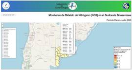 En el sudoeste bonaerense, como en ciertos puntos de la República Argentina, se ha detectado una tendencia a la disminución de NO₂ durante el periodo marzo-julio del año 2020. Esto se debe a la implementación del Aislamiento Social Preventivo y Obligatorio ante la situación de pandemia por COVID-19. El cumplimiento del ASPO por parte de la población, ha permitido mermar la producción de gases nocivos. Sin embargo, en casos puntuales, el incremento de los valores de NO₂ se asociaron a la liberación de la población, registrándose anomalías en los mismos. En relación a la ubicación de centros con mayor emisión, se observaron variaciones. La ciudad de Bahía Blanca, como núcleo de actividades industriales, político, educacional y servicios en la región, se mantuvo en valores altos de emanación de NO₂, relacionado a su vez con su alto porcentaje de población.