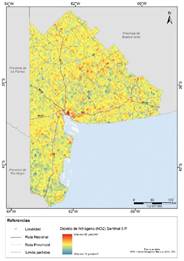 A su vez, en el sector norte, las principales actividades económicas se relacionan con el trabajo agrícola y si bien se trata de una region donde prevalece la vegetación, se infiere que los máximos valores apreciables se deben a la finalización de la cosecha de granos gruesos como cereales y oleaginosas. Se entiende que, la flora, en general, tiene la capacidad de captar y absorber gases y partículas dispersas en la atmósfera (polvo, ozono, dióxido de nitrógeno, polen, monóxido de carbono, entre otros) cumpliendo, de este modo, su función de “pulmón” en el medio ambiente (López Castro, 2013). La ausencia de la vegetación debido a la cosecha de las mismas, sumado a las nuevas disposiciones de libre circulación y la concentración de población, produjeron un incremento de las emanaciones en este sector del área de estudio.