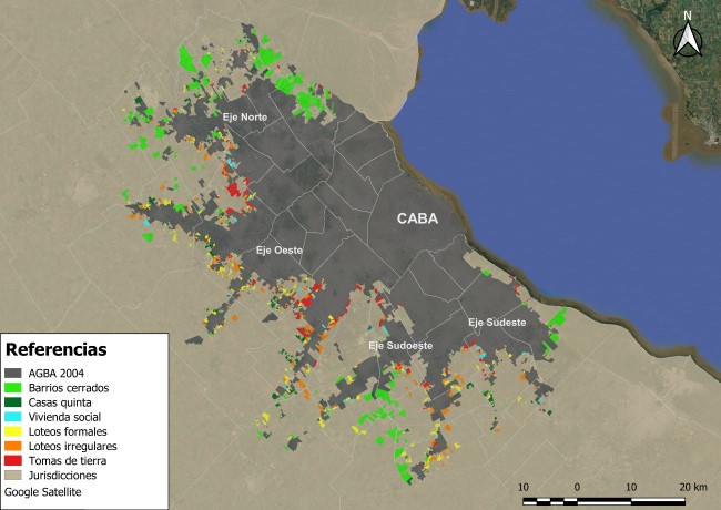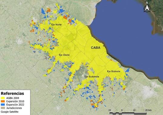 Como se adelantó en la introducción, existe acuerdo en que el área de la AGBA ha observado una notable expansión de su superficie durante las últimas dos décadas. Por ejemplo, el trabajo de Buzai y Montes Galbán (2020), realizado sobre la base del procesamiento digital de imágenes satelitales nocturnas, arrojaba datos vertiginosos, con un incremento neto de 1.300 km2 del aglomerado para el período 1992-2012, lo cual elevaría el total de la superficie del AGBA a 4.078 km2 para esta última fecha.