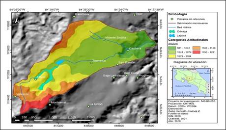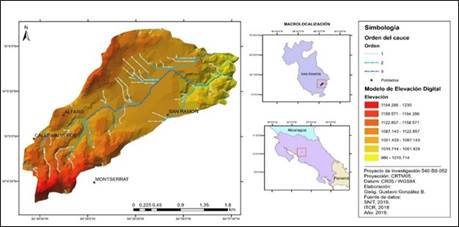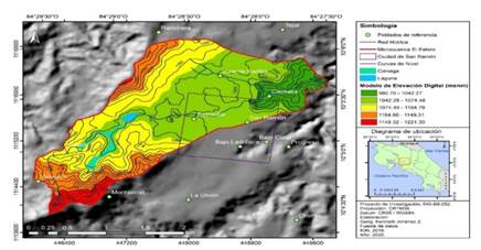 La elaboración de la morfometría de la microcuenca se basó en las curvas topográficas de la hoja Naranjo, escala 1:50.000, del Instituto Geográfico Nacional (IGN). A partir de la hoja previamente escaneada y georreferenciada usando el sistema de información geográfica (SIG), ArcGIS® 10.8. Además, se realizó la digitalización de los drenajes y la línea de crestas, los contornos de elevación y con ello se trazó el límite topográfico de la microcuenca hidrográfica.