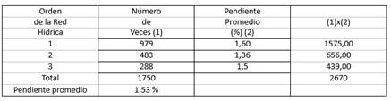 Pendiente de la Cuenca: Se calcula como la media ponderada de todas las superficies altitudinales en que ocurre la escorrentía de los cauces, tributarios y otros canales: